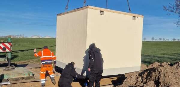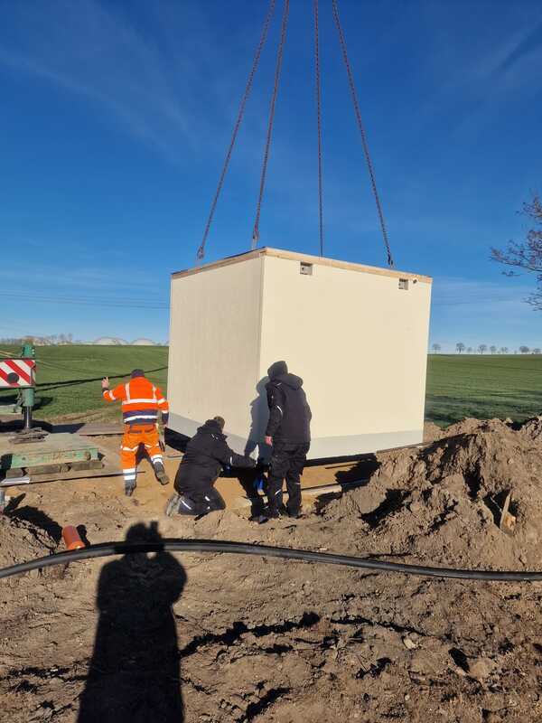 Mit dem Bau dieser Druckerhöhungsstation am Ortseingang der Ortslage Suckow soll die Trinkwasserversorgung und die Abdeckung von Löschwasser aus dem öffentlichen Trinkwassernetz deutlich verbessert werden.